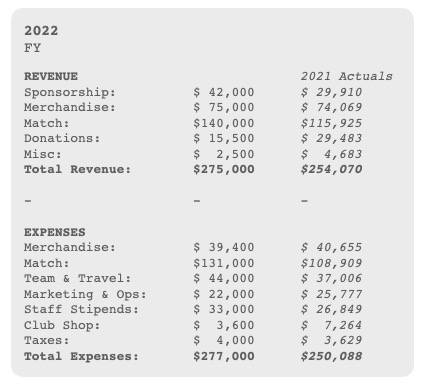 Every year, I write a recap of our season with a focus on how we did financially because financials are the one part of soccer that nobody ever talks about and the one thing that clubs would most benefit from knowing. – Hoedeman
