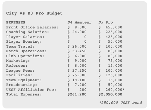 To illustrate, let’s take a look at our budget up against what I’ve been told is a decent proxy for a third division professional club on a middling budget.(50)