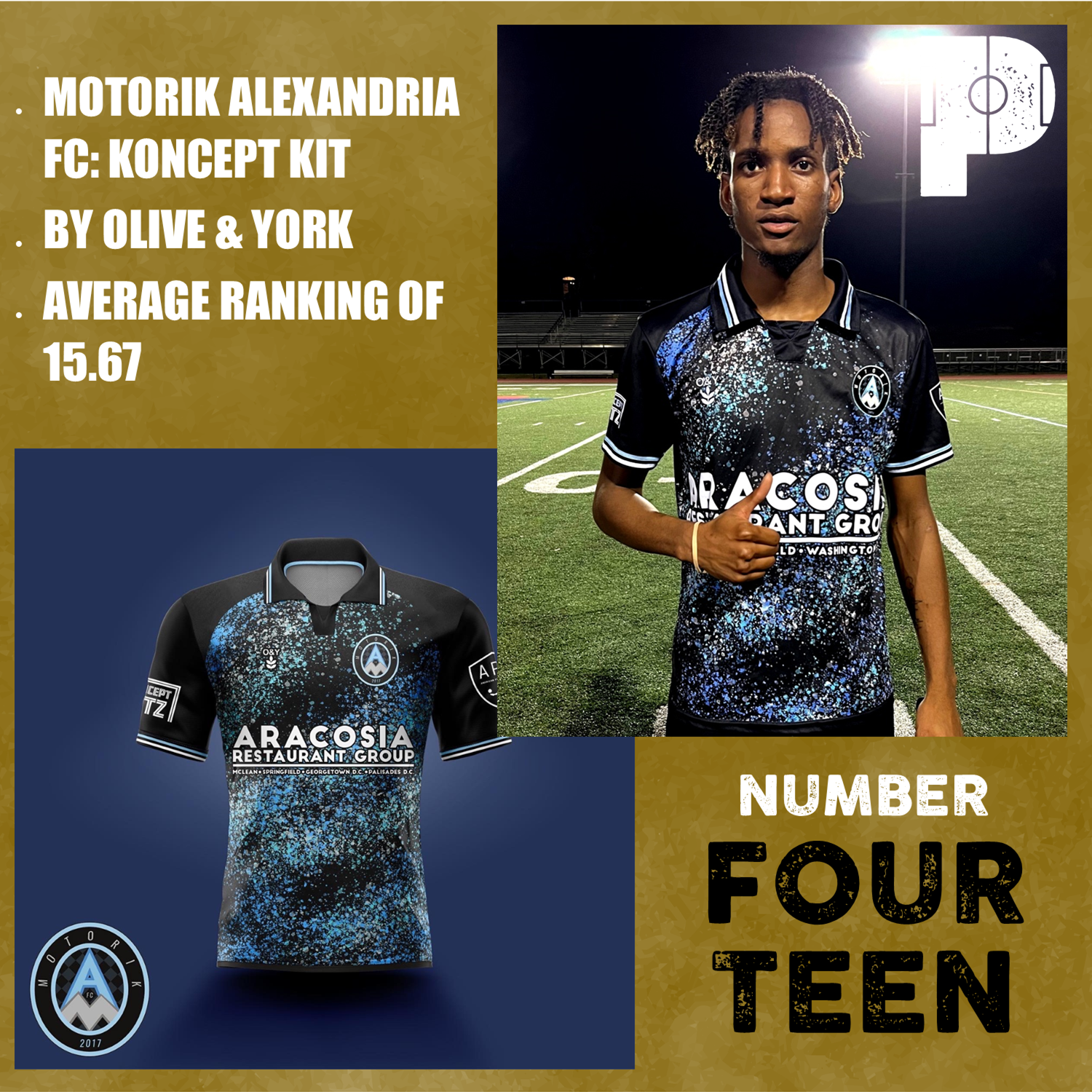 Number 14 is Motorik Alexandria FC with their Koncept Kitz collaboration with Olive & York