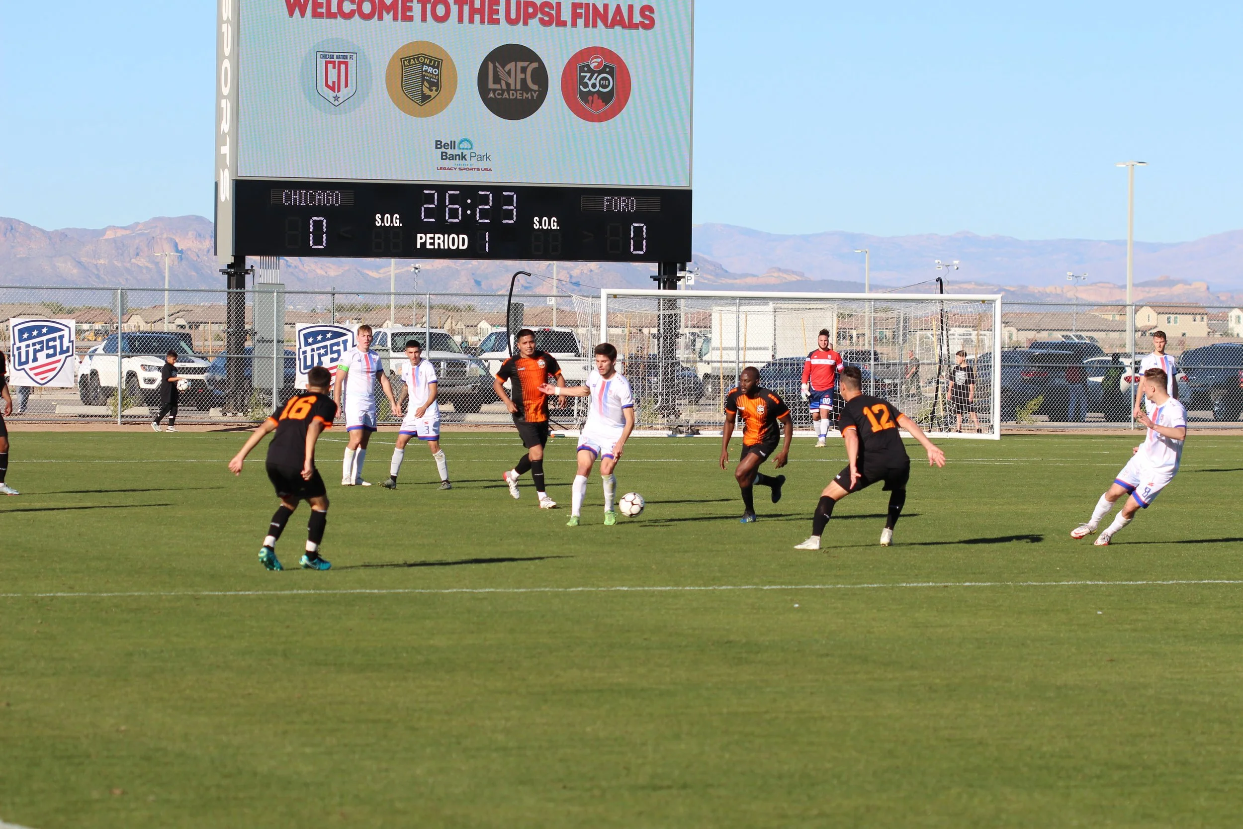 As the players stood in line during the national anthem, it was clear that both clubs were about to bring a level of play that would delight the small, but enthusiastic crowd. Within the first ten minutes, Chicago was aggressively attacking the Foro backline, looking for the pass that would unlock their streaking attackers. For their part, Foro’s defenders were up to the challenge. Veteran Anthony Manny, who played professionally for multiple clubs, was extremely active in snuffing out Chicago’s chances. Nation had been on a goal-scoring tear all season, finishing up with a very NICE 69 goals, tops in the UPSL. And the chances were there in the first half, as Nation continued to look dangerous, testing the Texas club, but the defense was able to hold firm and deny the Chicago powerhouse from scoring the entire match.